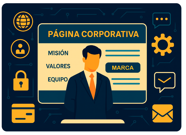 Una Página Corporativa es el sitio oficial de una empresa u organización. Su objetivo es construir confianza, comunicar la identidad (misión, valores, equipo) y explicar con precisión qué ofrece y a quién. Sirve como base de toda presencia digital: desde aquí se articula el posicionamiento SEO, la comunicación institucional y el soporte a ventas (servicios, casos, contacto).